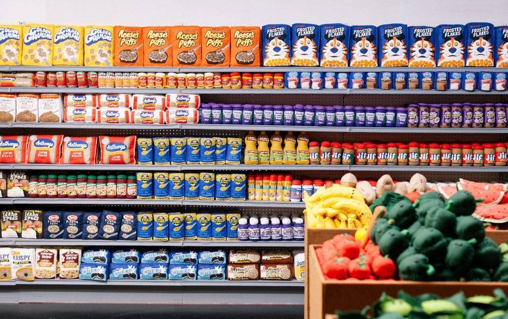 Conceived as a time capsule of late-20th-century consumer culture, The Beginning of Convenience recreates a familiar American grocery store from the 1980s and early 1990s. Visitors will wander through aisles, shelves and checkout counters filled not with real goods, but with more than 20,000 hand-sewn felt items: packaged foods, frozen dinners, household cleaners, cosmetics and other everyday products. Each object, from cereal box to soda can, is rendered in Sparrow’s signature bright, tactile style, blurring the line between pop spectacle and sculptural detail.